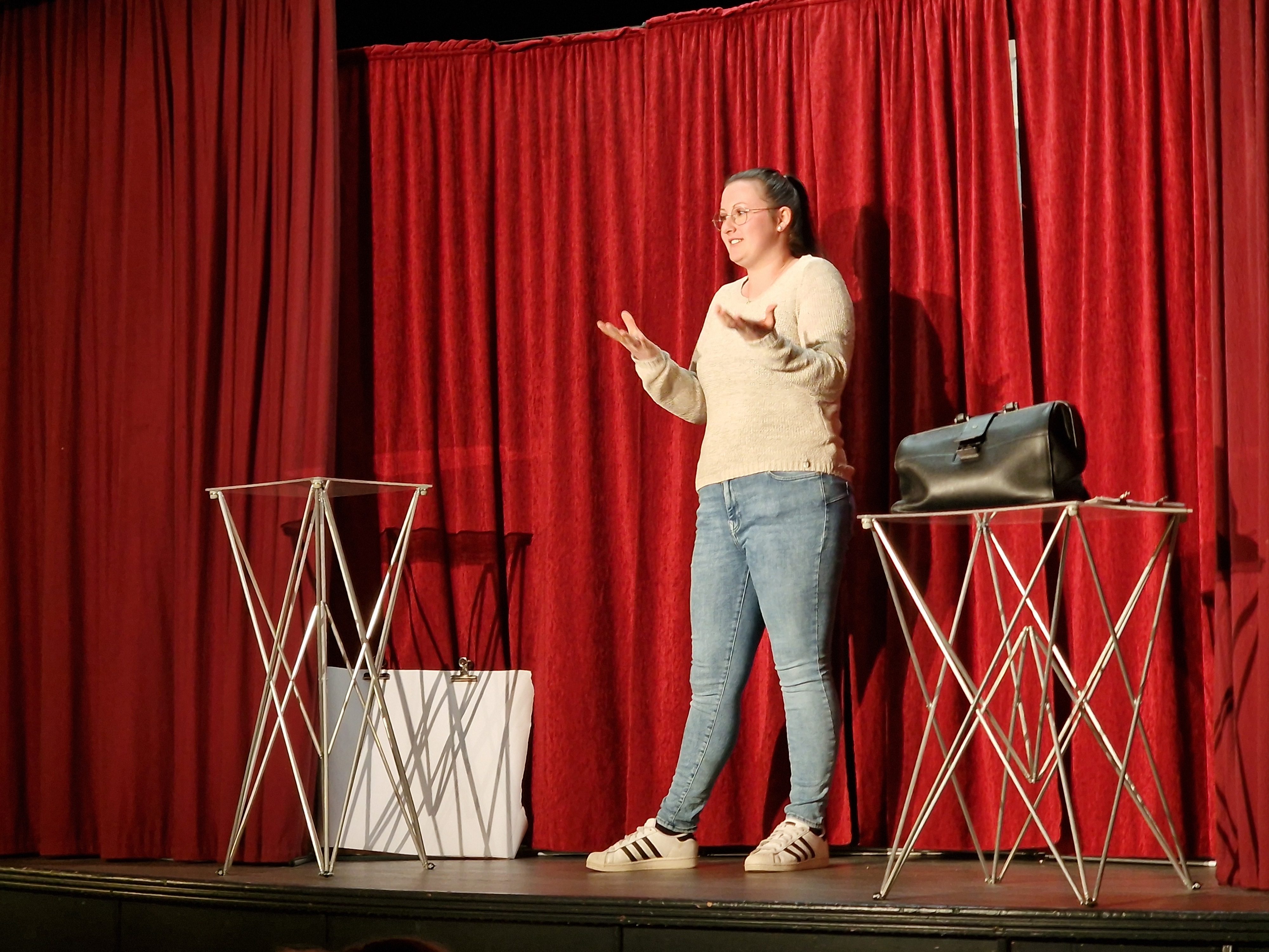 Am Abend folgte der zweite Teil: die große Zaubershow. Der Andrang war so groß, dass sich der Kultursaal rasch füllte und die Mitglieder der Dorfbühne Waidhaus laufend zusätzliche Stühle aufstellen mussten. Die Dorfbühne übernahm zudem die Bewirtung der Gäste und sorgte für einen rundum gelungenen Rahmen.