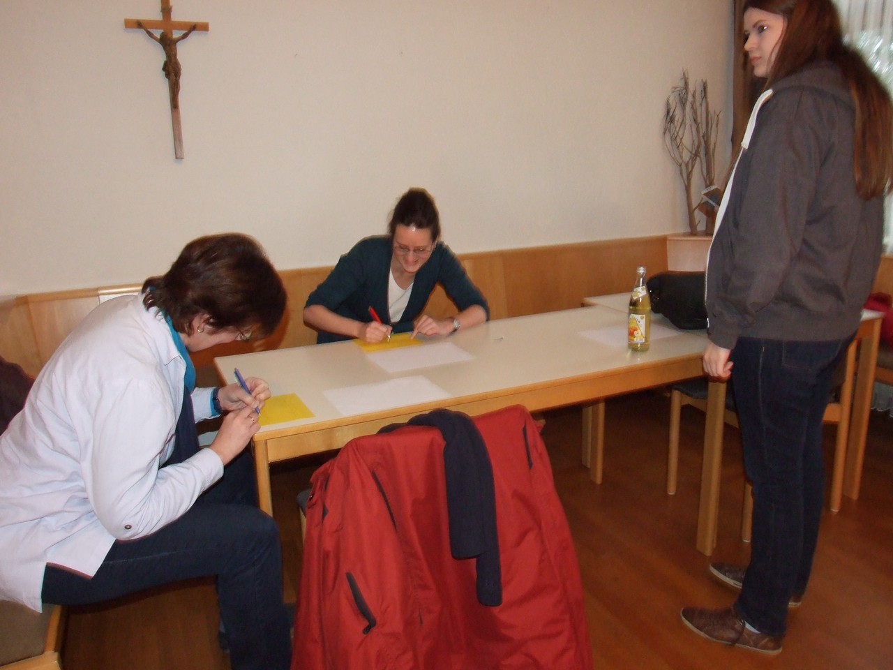 "Du bist doch auch einer von denen" - Ein Text viele AussagenMitglieder des Theatervereins „Dorfbühne“ besuchen seit fast zehn Jahren regelmäßig Theaterkurse des Verbands bayerischer Amateurtheater. Die dreitägigen Kurse des zugehörigen Bezirks finden jedoch immer am ersten Oktoberwochenende – und damit mitten in der stressigen Zeit der eigenen Theaterproben für das Herbsttheater - statt. So reifte bei Regisseur Josef Kleber die Idee, selbst einen so genannten „Hauskurs“ in Waidhaus und komprimiert auf zwei Tage zu organisieren. Nach entsprechenden Gesprächen bereits beim Oktober-Kurs befürworteten die Mitspieler diese Idee einstimmig. Und nach Telefonaten mit der Verbandsleitung und dem Referenten Jürgen Peter (zugleich Vizepräsident im Verband Deutscher Amateurtheater und Bezirksspielleiter im Verband Bayerischer Amateurtheater) standen Termin und Umfang des Kurses schnell fest. "Wie beeinflusst die Dramaturgie die Aussage eines Theaterstücks" lautete der Titel des Kurses, zu dem auch befreundete Theatergruppen eingeladen wurden und Teilnehmer schickten. Am Samstagmorgen startete der Kurs in aller Frühe, wozu die Kommune dankenswerterweise das Gemeindezentrum im Rathaus zur Verfügung stellte. Dazu gesellten sich vier Laienspieler der Theatergruppe aus Mühlhausen und drei aus Tiefenbach, die ebenfalls dem Verband angehören, so das neben den sieben Gästen und neun „Dorfbühnen“-Mitgliedern stolze 16 Personen teilnahmen. Die Jüngsten unter den Teilnehmern waren mit 14 Jahren Phillip Kraus aus Waidhaus und die 16-jährige Lisa Scherr aus Tiefenbach. Neben den Laienschauspielern gesellten sich auch Martina Wettinger von der Maske und Soufleuse Brigitte Krämer zur Gruppe. Bürgermeisterin Margit Kirzinger begrüßte die Teilnehmer und lobte die „Dorfbühne“ für ihr Arrangement in Waidhaus: „Ich freue mich über den Kurs im großen Rathaussaal, der diesen dadurch weiter belebt.“ Sie reihte sich noch in die interessante Vorstellungsrunde ein und lauschte gespannt den Werdegängen, Intuitionen und Wünschen der Teilnehmer für den Kurs. Mit verschiedene Übungen erarbeitete die Gruppe um Jürgen Peter, wie nur aus einem Wort ganze und vor allem auch verschiedene Szenen entstehen können, um die Zuschauer im Bann zu halten. Jeder Teilnehmer musste seine Interpretationen zeigen, die in der gemeinsamen Runde besprochen und optimiert wurden. Peter schaffte eine lockere Atmosphäre, die Jedem Platz ließ, sich frei zu entfalten und trotzdem Vertrauen in die Gruppe ermöglichte, so das es keine Hemmungen gab um auch mal verrückte Ideen umzusetzen. Ein köstliches Mittagessen, geliefert vom Hotel Biehler, unterbrach den lehrreichen Vormittag. Um die Pausen möglichst stressfrei zu halten, wurde für eine Rundumversorgung mit Getränken, Kaffee, Kuchen, Snacks und Mittagessen durch die Organisatoren von Seiten des Theatervereins gesorgt. So ging es gestärkt in die nächste Übung, mit der Aufgabe, aus einen Dialog von fünf vorgegeben Sätzen der mit "Du bist doch auch einer von denen" beginnt, ein zehnminütiges Theaterstück, zu entwickeln. In vier Gruppen wurden alle Mitwirkenden zu Autor, Regie und Spieler gleichermaßen; unterstützt vom Bezirksspieleiter. Auch nach dem Kurs währte der gemeinsame Erfahrungsaustausch - mit vielen Anekdoten des Dozenten gespickt - noch bis spät hinein in die Nacht. Mit Lockerungs- und Konzentrationsübungen startete der Sonntagmorgen und es ging zu den letzten Proben. Zur Abschlusspräsentation befand sich auch die Bürgermeisterin wieder unter den Zuschauern und würdigte mit viel Lob die Leistungen der verschiedenen Spielszenen, die aufbauend auf dem Grundtext an verschiedenen Orten, wie im Irrenhaus, Kindergarten, Metzgerei und Bushaltestelle, spielten und dabei lustige wie zeitkritische Themen beinhalteten. Im Resümee bedankte sich der Referent genauso wie die Teilnehmer einmütig für die „gute Zusammenarbeit und für ein kollegiales, gut organisiertes und lehrreiches Wochenende“, verbunden mit dem Wunsch, dies auf jeden Fall zu wiederholen. So beeinflusste die Dramaturgie nicht nur die Aussage des Kurses, sondern pflegte viele neue und bestehende Freundschaften unter den Theaterbegeisterten. Viele der auswärtige Gäste nutzen noch das Angebot, die eigens geöffnete und umfangreiche Ausstellung "Waidhauser Grenzgeschichte(n)" im Rathaus zu bestaunen. |